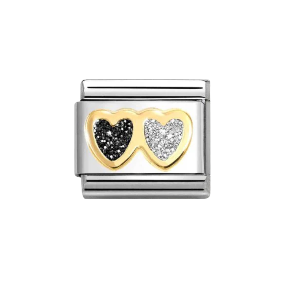 Nomination Gold With Black & Silver Glitter Double Heart Charm