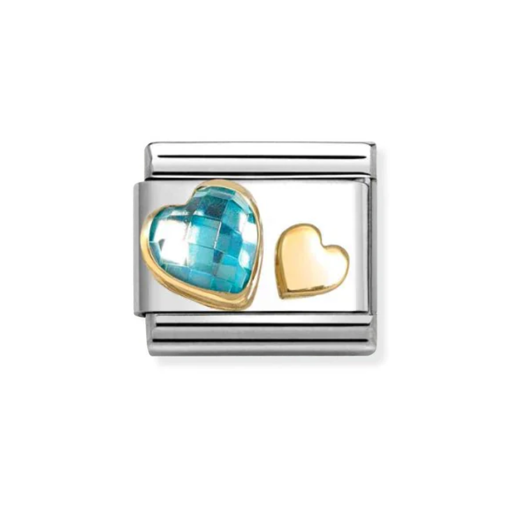 Nomination Gold Heart Duo with Blue CZ Charm