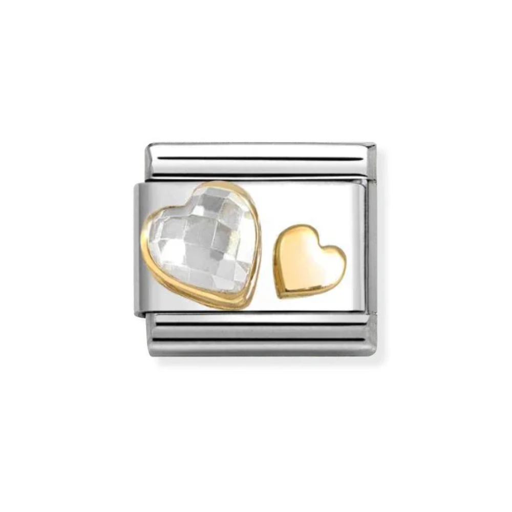 Nomination Gold Hearts Duo with Clear CZ Charm