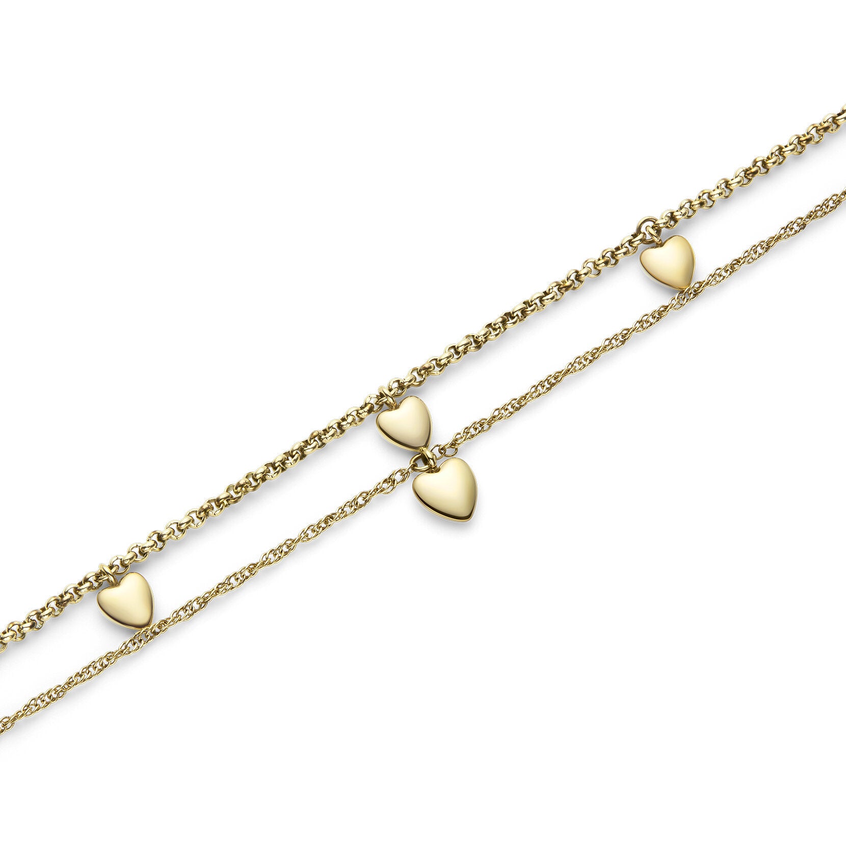 Design Double-layered chain with 3D heart charms
