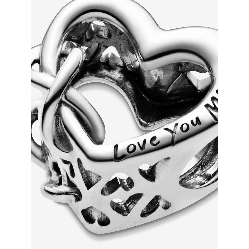 Express your feelings with a meaningful charm. In this design, the infinity sign is wrapped around the heart-shaped charm. The engraving pays tribute to the immeasurable love between a mother figure and their child.