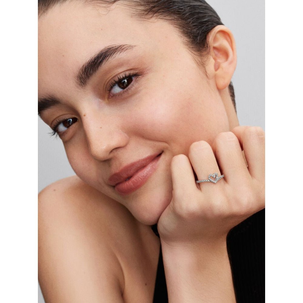 Pandora Silver Sparkling Wishbone Heart Ring