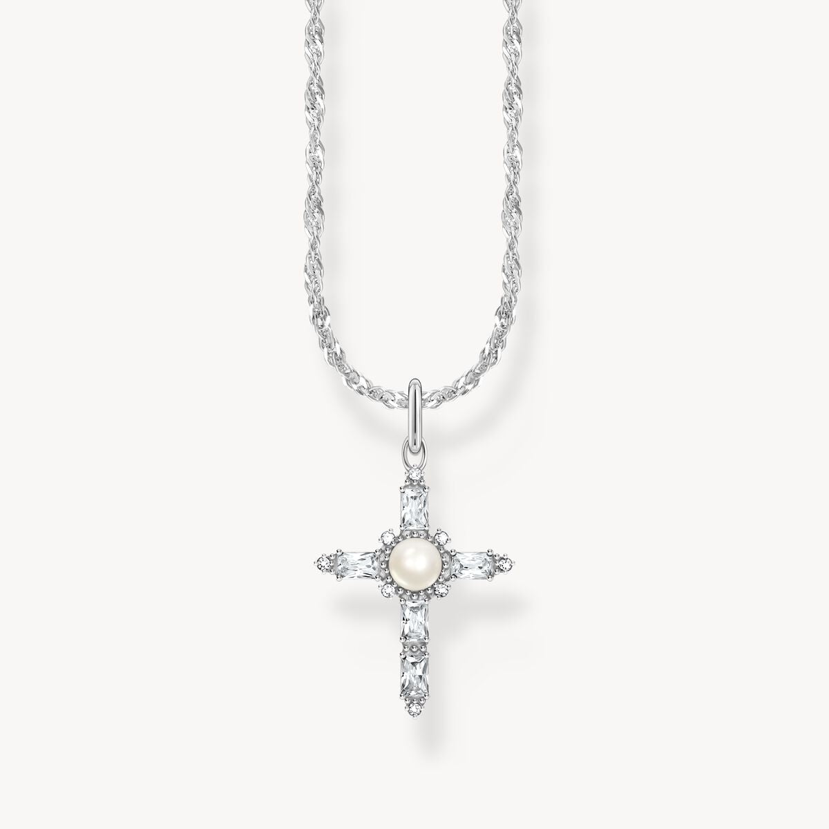 Thomas Sabo Silver Cross Romance Pearl Necklace