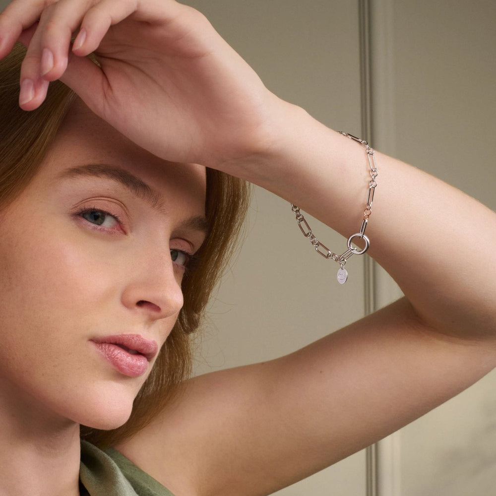Clogau charms are a wonderful way to mark special milestones and build a collection of treasured keepsakes to last a lifetime. Tell your story with our contemporary Insignia Sterling Silver Charm Bracelet, featuring a figaro-style chain with 9ct rose gold detailing. Our matching neckwear can be linked to this bracelet to form a longer chain.