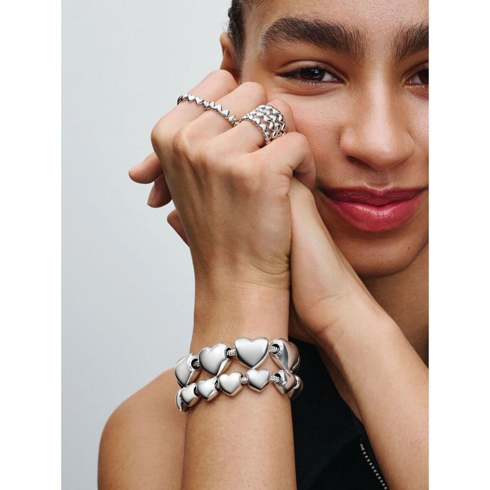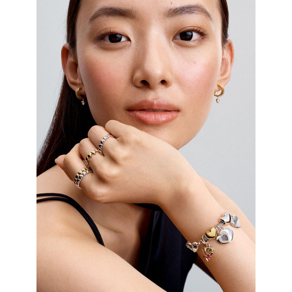 Give a gift from the heart with this sterling silver ring. Expertly crafted with a row of hearts making up the band, this ring looks equally beautiful worn alone or layered with contrasting Pandora rings. ...