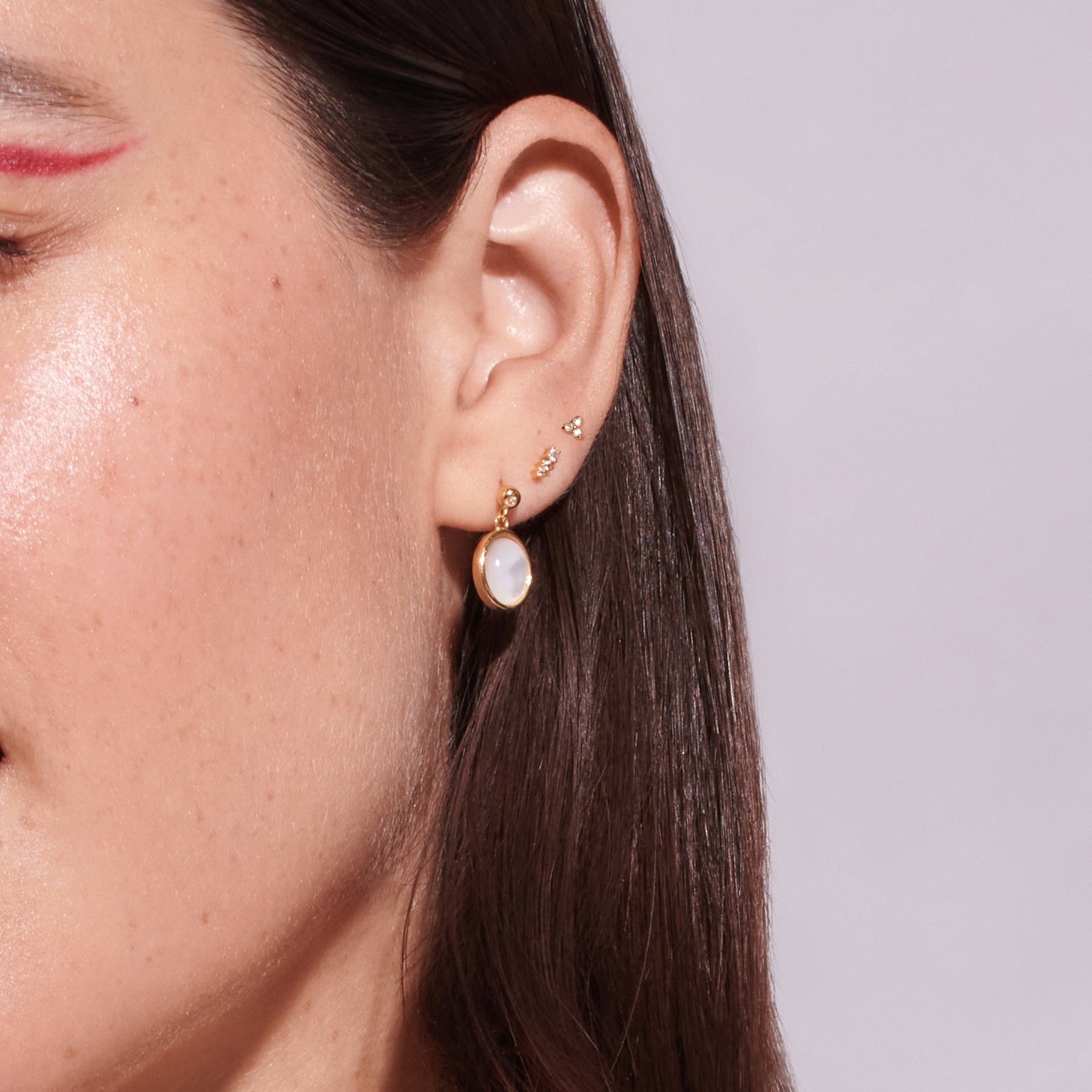 Crafted with the utmost precision and adorned with sparkling white topaz gemstones, these micro stud earrings are a true testament to the art of fine jewellery. Designed in collaboration with the renowned Jacqueline Jossa, they are the perfect embodiment of modern glamour and timeless charm.