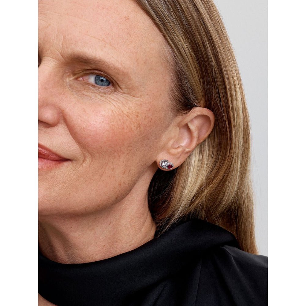These studs each feature two heart-shaped stones, a cubic zirconia and red crystal, connected by a halo of micro cubic zirconia. Symbolising the harmony of connected love, they make a heartfelt gift, or a treat for you.