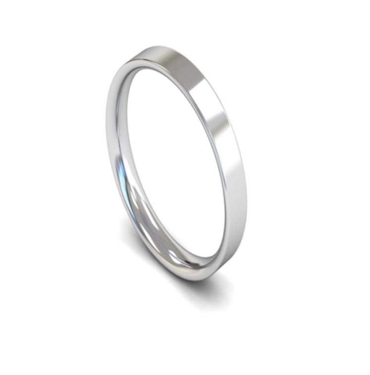 Mococo Fine 9ct White Gold 2mm Flat Court Wedding Ring