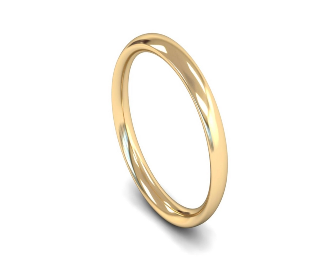 Mococo Fine 9ct Yellow Gold 2mm D Shaped Wedding Ring