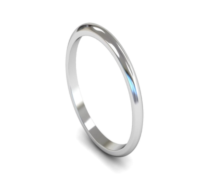 Mococo Fine 9ct White Gold 2mm D-Shaped Wedding Ring
