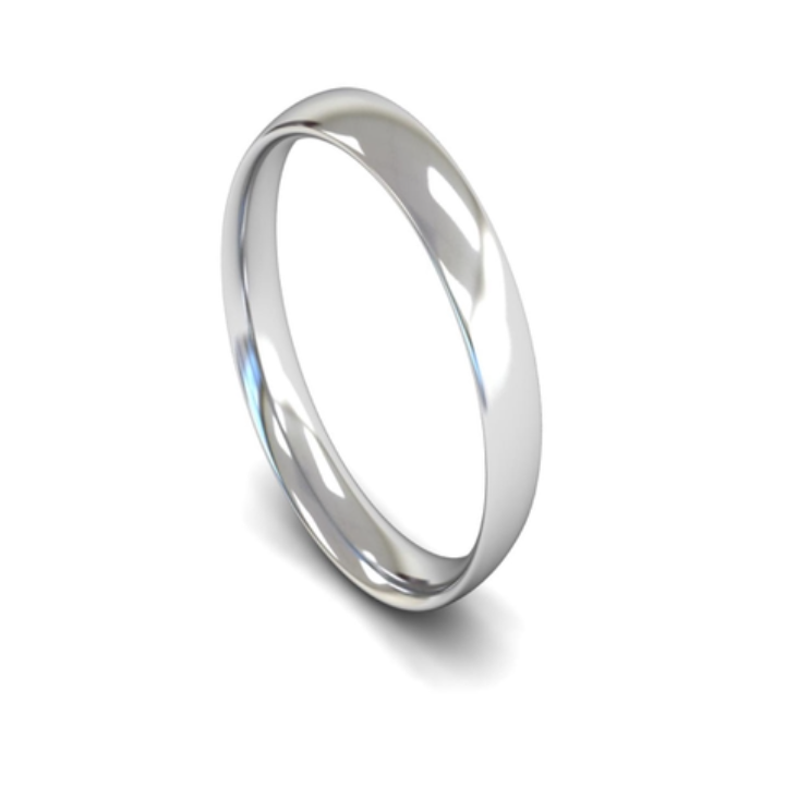 Mococo Fine 9ct White Gold 3mm D-Shaped Wedding Ring